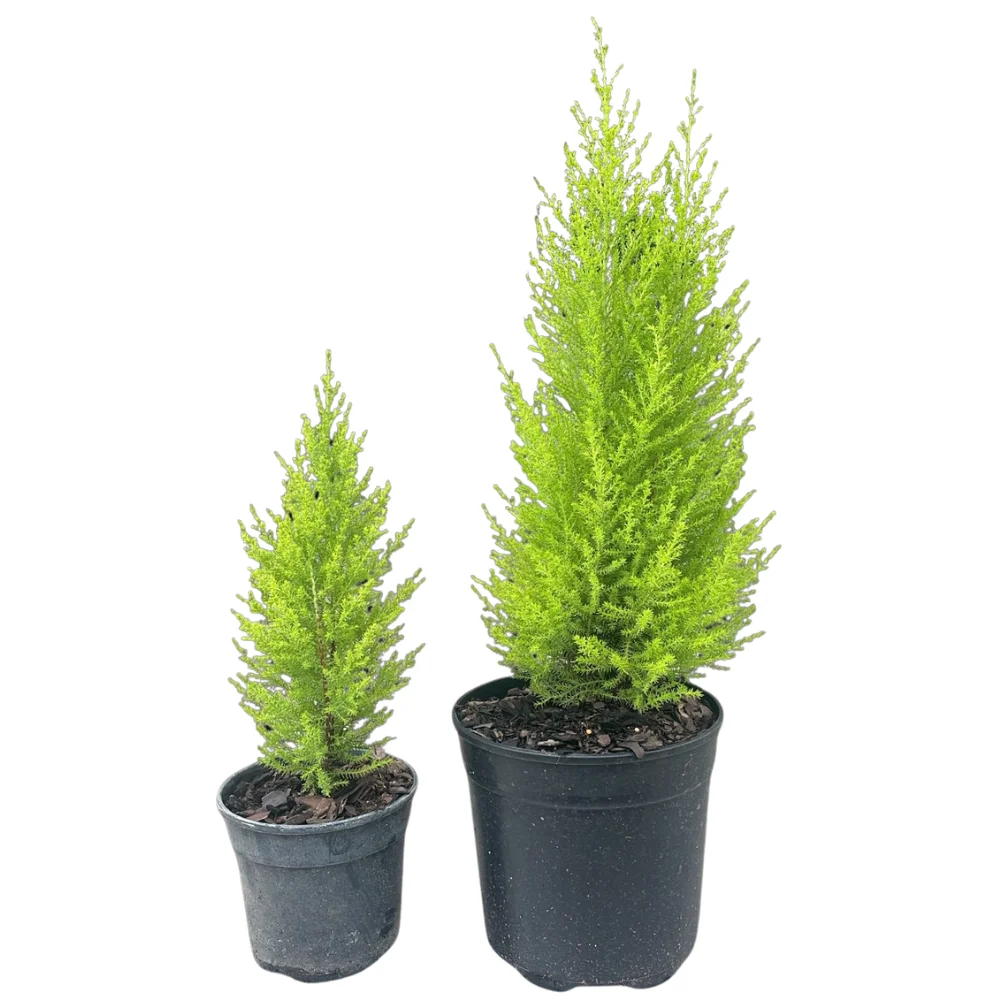 Overview: The Gold Crest (Cupressus macrocarpa ‘Goldcrest’) is a striking evergreen known for its vibrant golden-green foliage and refreshing lemon scent released when touched. Naturally upright with a refined conical shape, this plant brings structure, colour, and a clean, modern aesthetic to indoor and outdoor spaces. Native to coastal California, the Gold Crest adapts beautifully to South African homes—thriving especially well in bright, sunny areas. Its fine, feathery needles and cheerful glow make it a popular choice for décor, office styling, balcony pots, and festive displays.